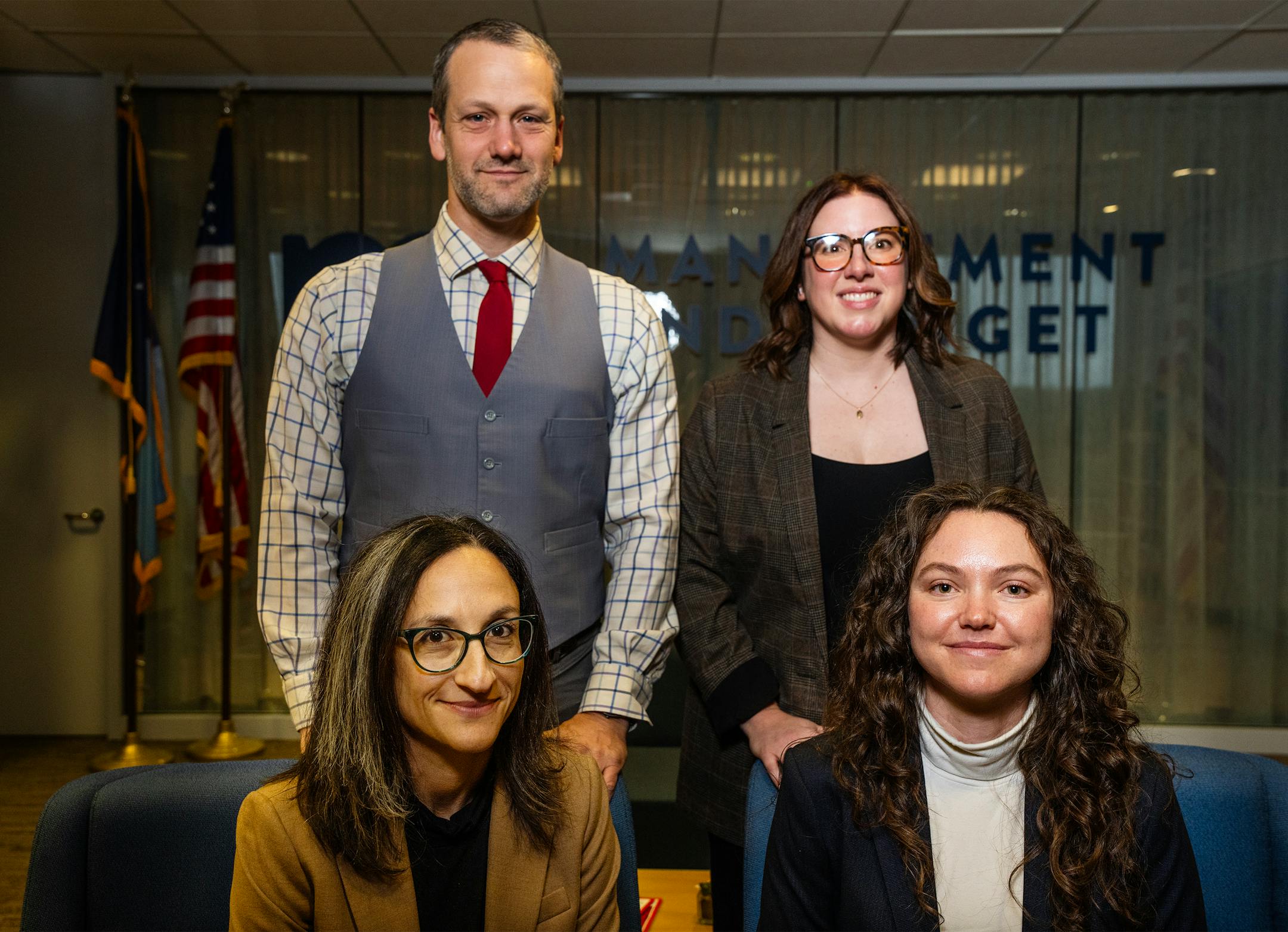 Sam Rockwell, Kerry York-Myles, Avery Prine, and Leah Corey are the four people in the state budget office called the Federal Funds Implementation Team. Normally, they help state agencies and local governments apply for money from Washington. Today they are on the front lines of monitoring cuts in federal funds. (Richard Tsong-Taatarii/The Minnesota Star Tribune)