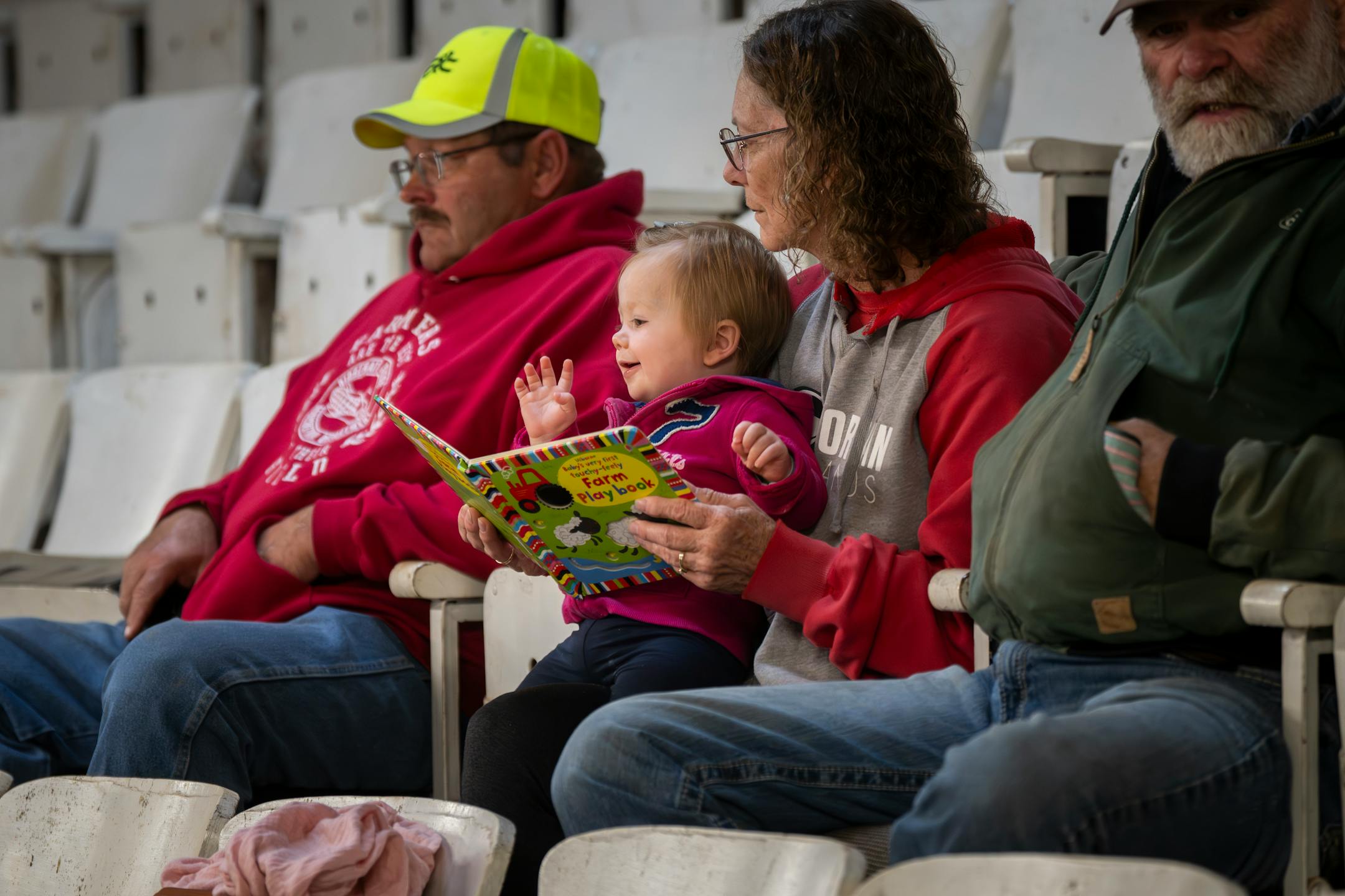 Stately Pietig, 11 months, attends a cattle auction with grandparents Patricia and Gary Roiger at the Sleepy Eye Auction Market. (Renée Jones Schneider/The Minnesota Star Tribune)