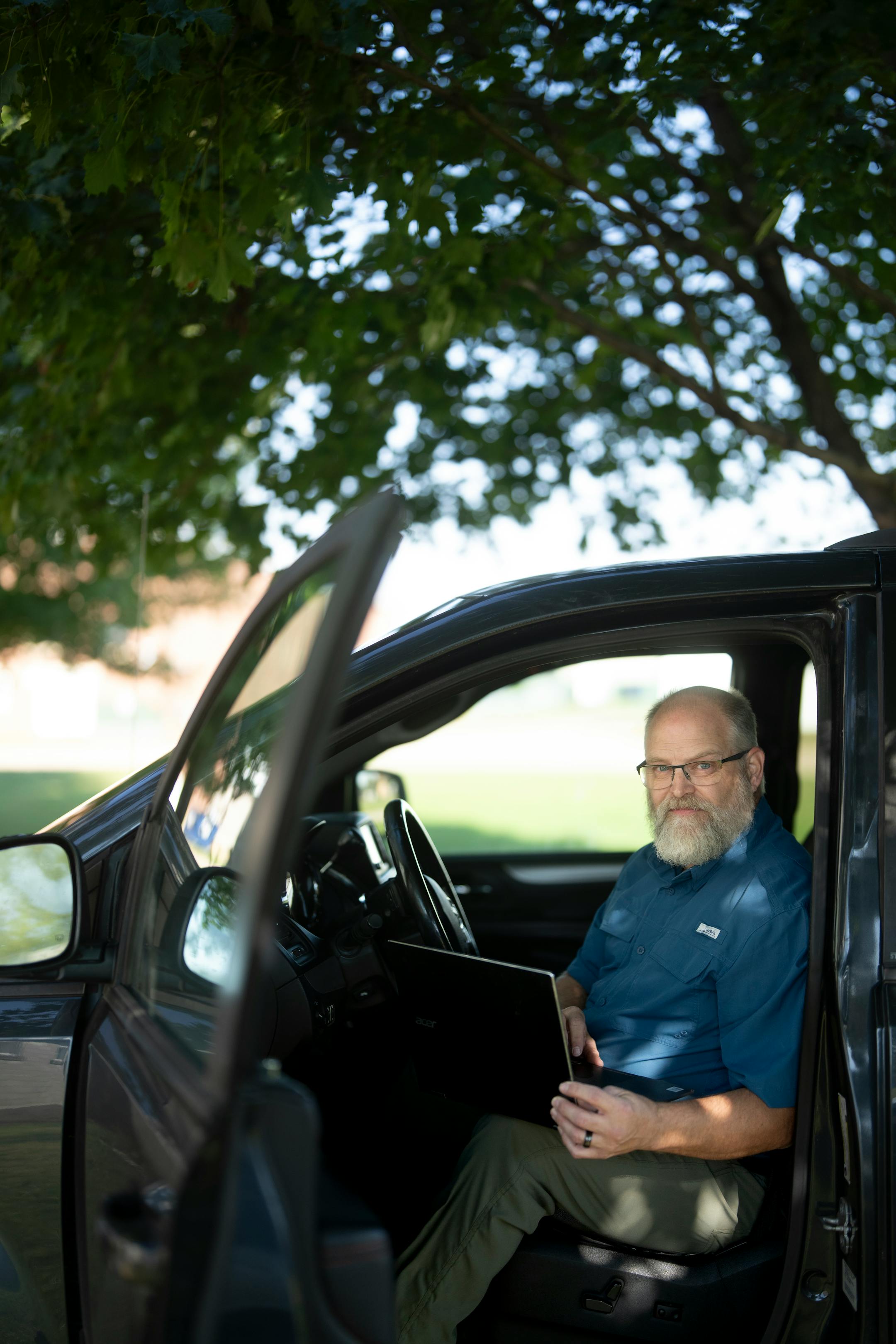 Doug Hughes does a lot of his work as a truancy officer from his truck. (Renée Jones Schneider/The Minnesota Star Tribune)