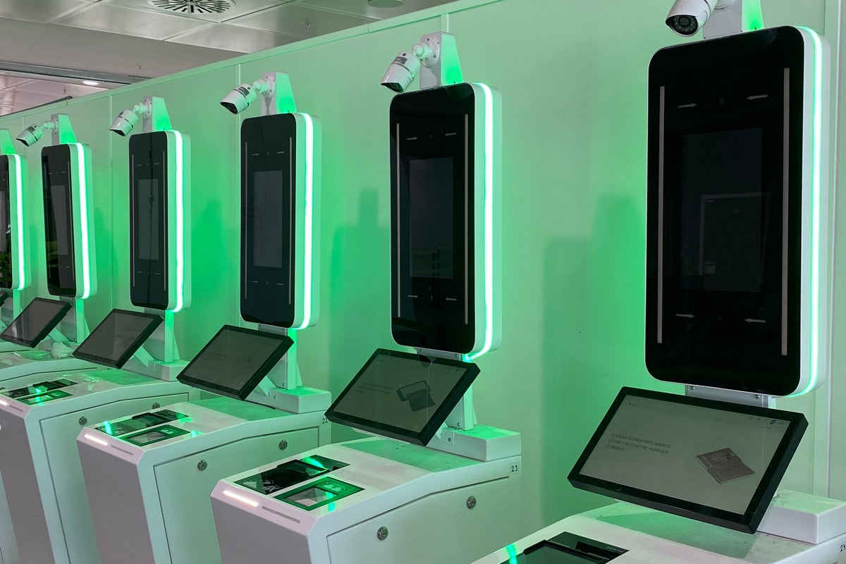 In the hour from 11.50pm on Friday night, 10 October, Palma airport in Spain is expecting nine flight arrivals from the UK – carrying more than 1,500 people, the vast majority of them British passport holders. The Independent has counted around 60 kiosks for biometric registration at the Mallorcan airport.